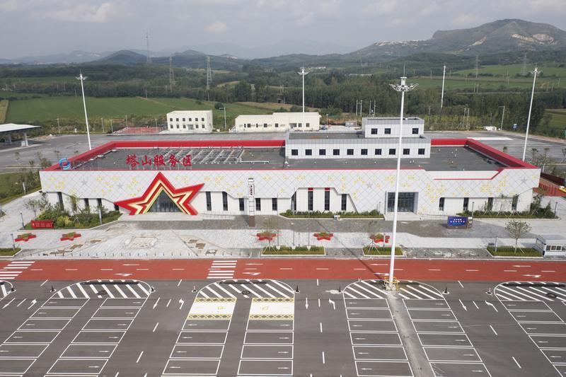 这是9月15日拍摄的京哈高速北京方向的塔山服务区(无人机照片)。