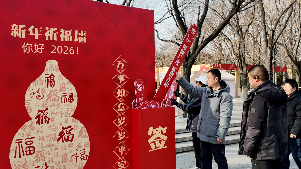 首届“永定门探索市集”,市民游客参加新年祈福活动。中国商报记者 王怡菲/摄