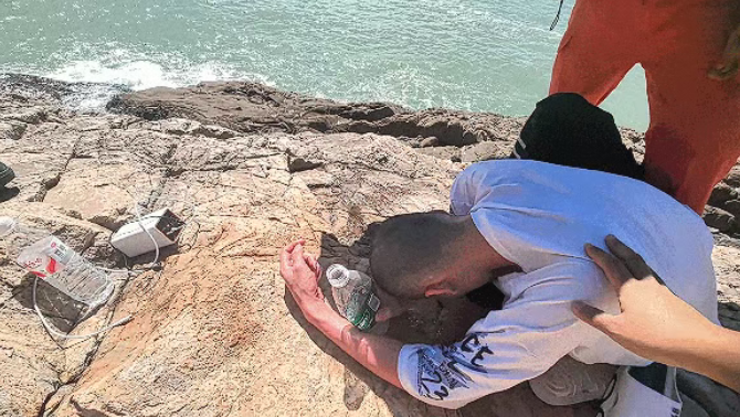 据了解,男子已在礁石上待了3天,8月30日,他独自一人携带食物和饮水来此地进行海钓。他白天持续钓鱼,夜间露宿树下,但未有任何渔获。