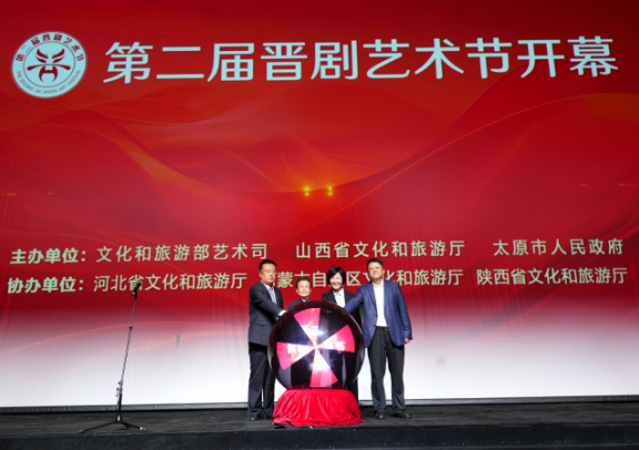 在热烈的掌声中,山西省文化和旅游厅厅长王爱琴、副厅长(正厅长级)张志仁、太原市人民政府副市长李永强与著名晋剧表演艺术家王爱爱共同按下启动球,标志着第二届晋剧艺术节正式开幕。