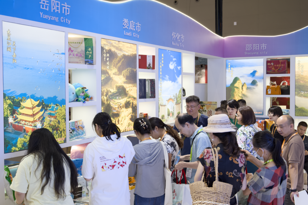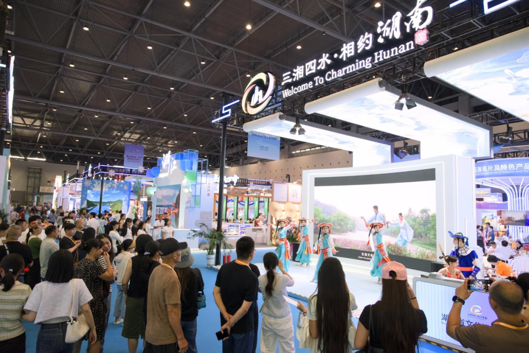 展区内,湘绣、浏阳烟花、菊花石、醴陵陶瓷、苗族刺绣、土家织锦、女书、安化黑茶等一批具有湖湘特色的非遗产品和文旅商品吸引众多观众驻足。群舞《瑶寨风情》、花鼓戏《刘海砍樵》、独唱《辣妹子》、互动巡游《唐风荷韵》等节目轮番上演。
