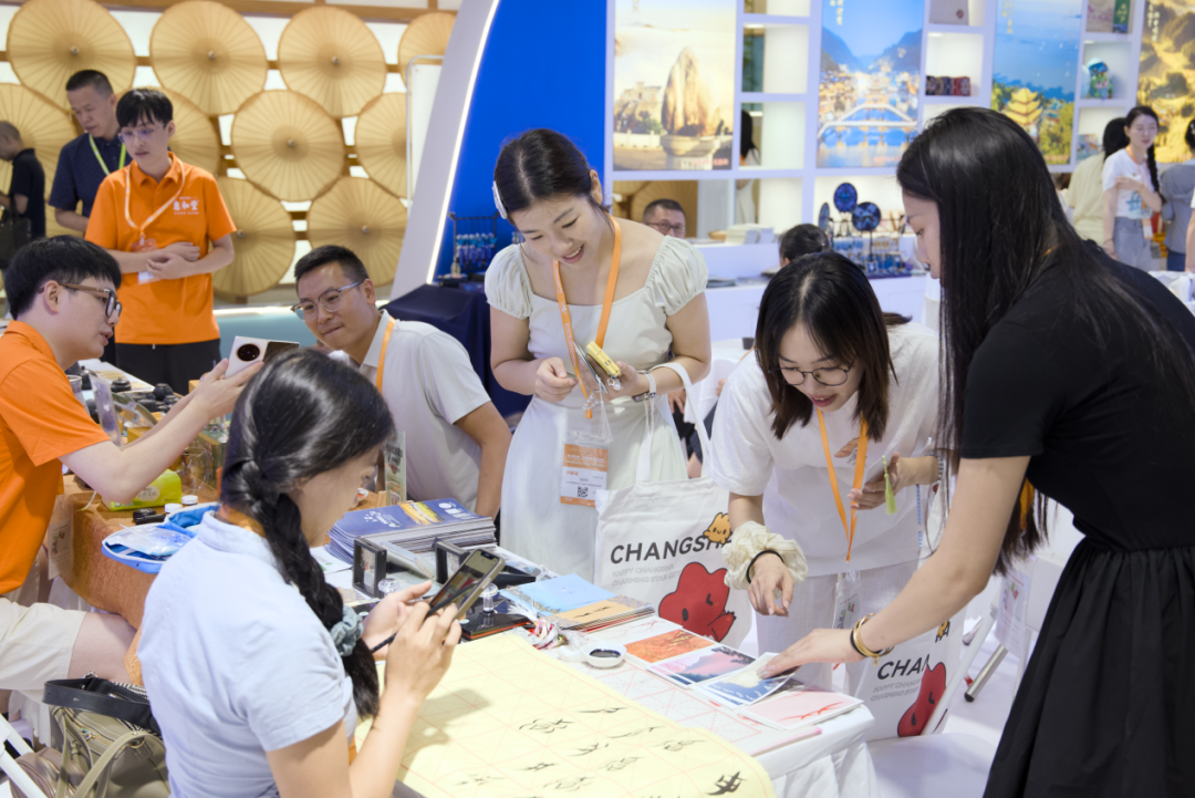 各市州展位也纷纷推出扫码赠礼、集章打卡、试吃体验等互动活动。长沙文旅手提袋、永州女书明信片、怀化侗医药足浴包、娄底五色米、邵阳崀山画册等成为“抢手货”;湘潭齐白石文创、株洲陶瓷艺术、郴州帆布袋和香袋等文创产品也深受青睐。截至目前,湖南展区接待6000余人次咨询,发放资料近万份。