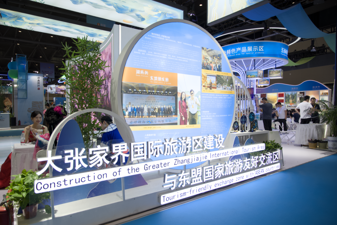 湖南展区紧扣“三湘四水 相约湖南”品牌形象,组织40余家参展单位,共120余种展品参展,集中展示了湖南文旅五张名片及特色产品、大张家界国际旅游区建设、湖南入境旅游政策及与东盟国家的友好交流成果。