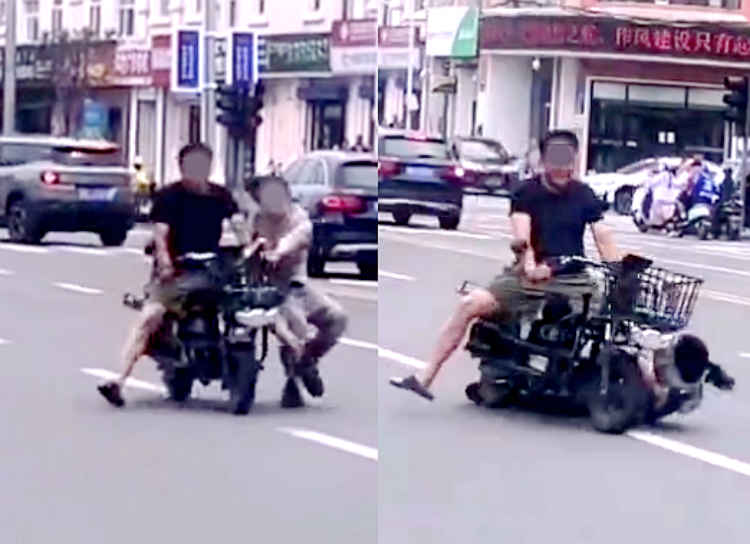 ▲骑电动车男子拖行女子的画面。视频截图