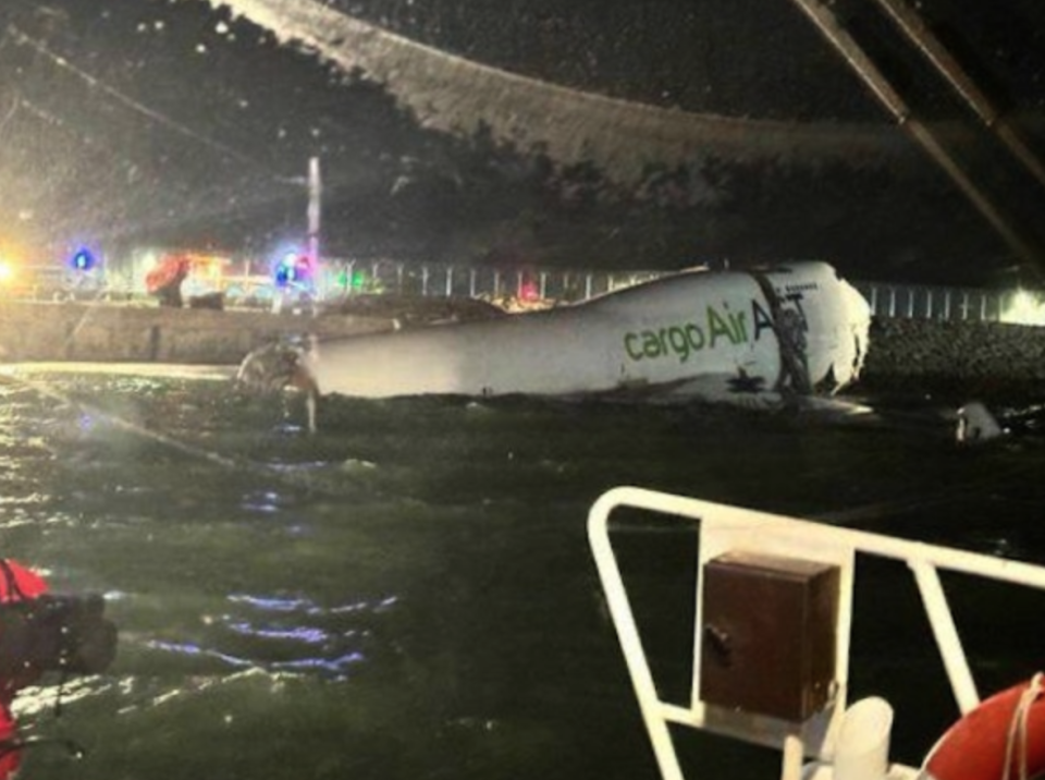 港府新闻公报于6时26分曾通报相关事故:香港国际机场今日(十月二十日)凌晨约三时五十分发生一宗事故。一架由阿联酋阿勒马克图姆国际机场抵港的B744货机(航班编号UAE9788)在北跑道降落后出现偏离情况滑出海面。空管人员已即时按既定机制通知机场管理局及其他救援单位。初步资料显示,机上四名机组人员已获救送院,另外两名地面工作人员受事故影响堕海,情况有待确定。北跑道因事件关闭,南跑道及中跑道将继续维持运作。