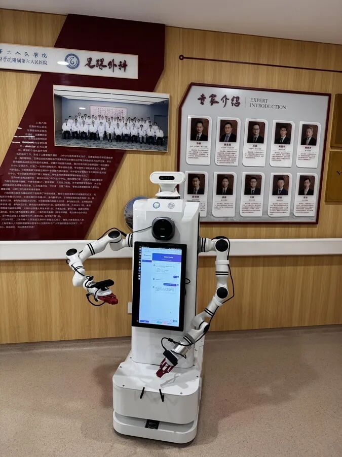 近日,一款轮式人形机器人在上海市第六人民医院国家骨科医学中心亮相,进入试用阶段。