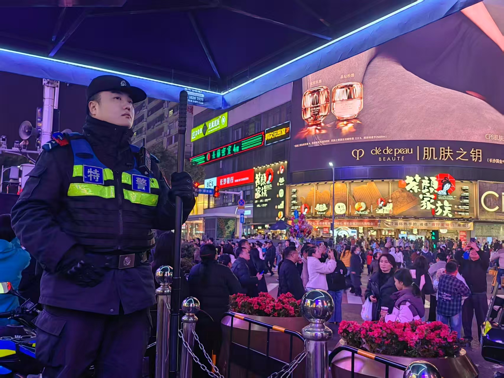 据了解,长沙市公安局切实加强春节期间安保工作,尤其是对重要场所和重点旅游景区周密部署安保措施,扎实安排警力布控,加强值班执勤,以确保群众安全和治安稳定。