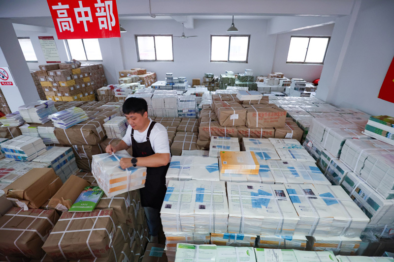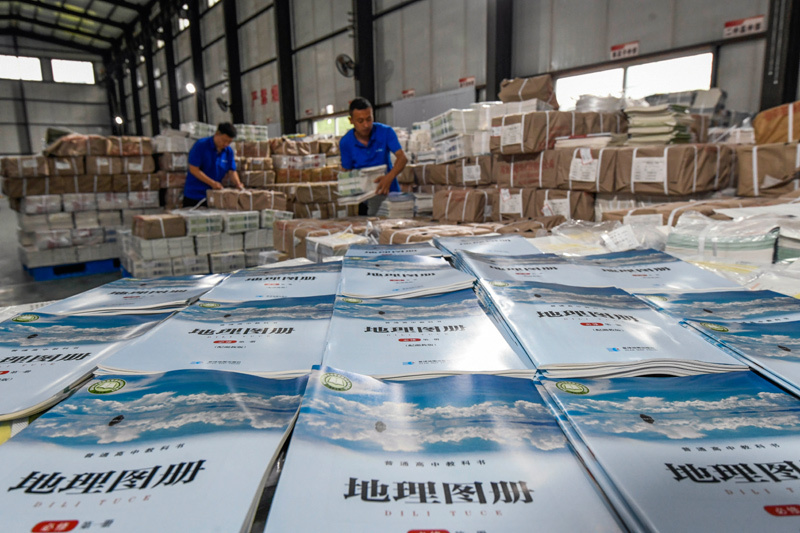 新学期开学临近,各地做好教材的接收、分发等工作,为开学做好准备。