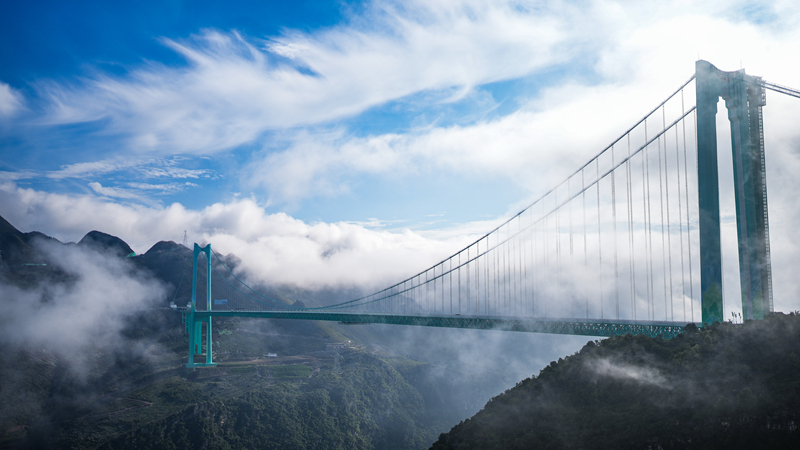 9月28日,世界第一高桥——贵州花江峡谷大桥建成通车。花江峡谷大桥是贵州六枝至安龙高速公路的控制性工程,大桥全长2890米,主跨径1420米,是目前世界山区峡谷第一大跨度钢桁梁悬索桥;其桥面距水面垂直高度625米,是新的世界第一高桥。